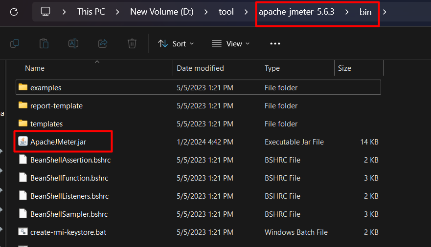 Truy cập folder bin → click đúp vào file ApacheJMeter.jar để chạy apache JMeter.