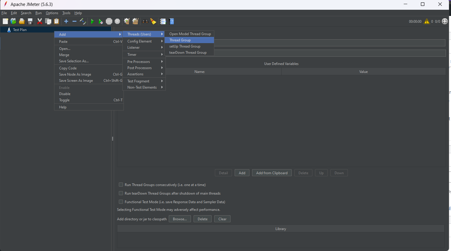 Chuột phải vào Test Plan, chọn Add → Threads (Users) → Thread Group.