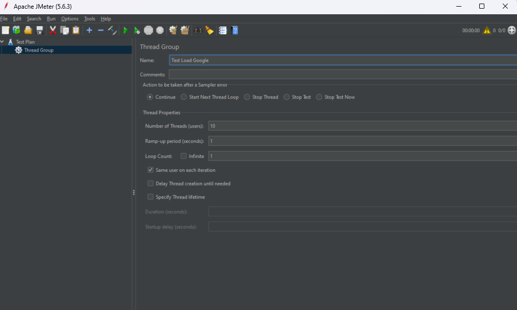 Nếu chọn Forever, JMeter sẽ lặp vô hạn cho đến khi bạn dừng test.