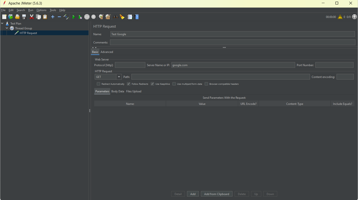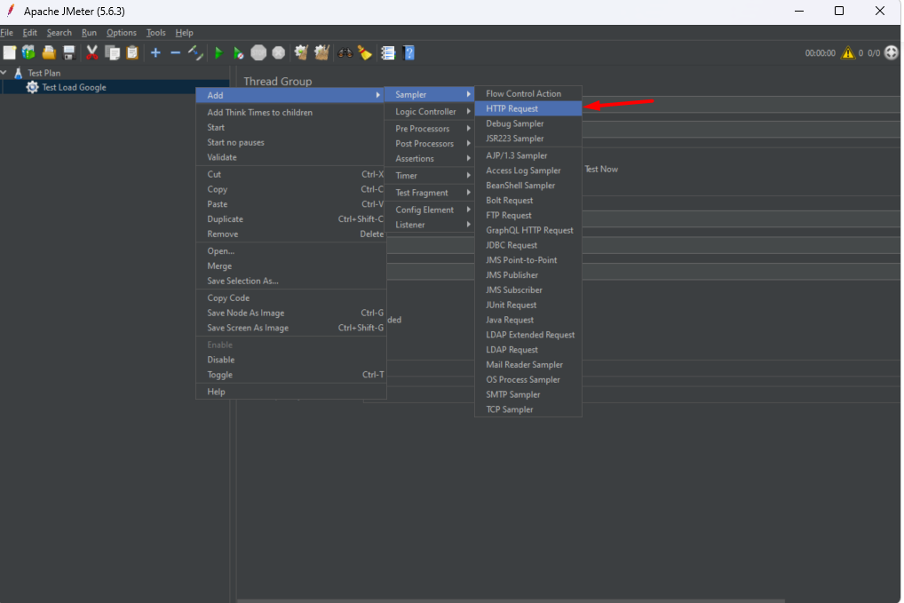 Tạo HTTP request để gởi tới Google. Nếu thực hiện với database thì dùng JDBC Request, mail là SMTP request,…