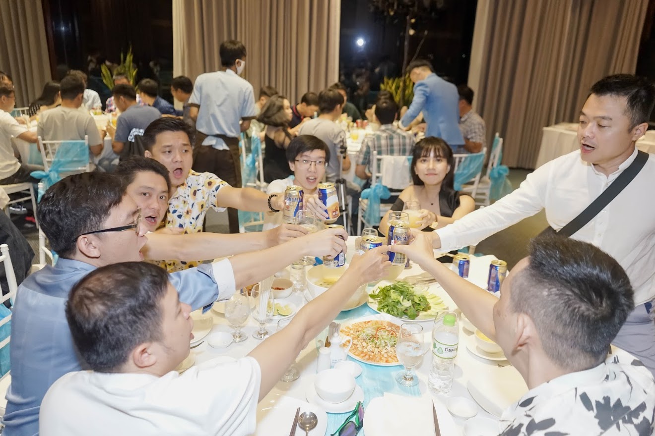 Các anh chị quản lý cắt bánh kem, khai mạc đêm tiệc kỷ niệm thành lập công ty