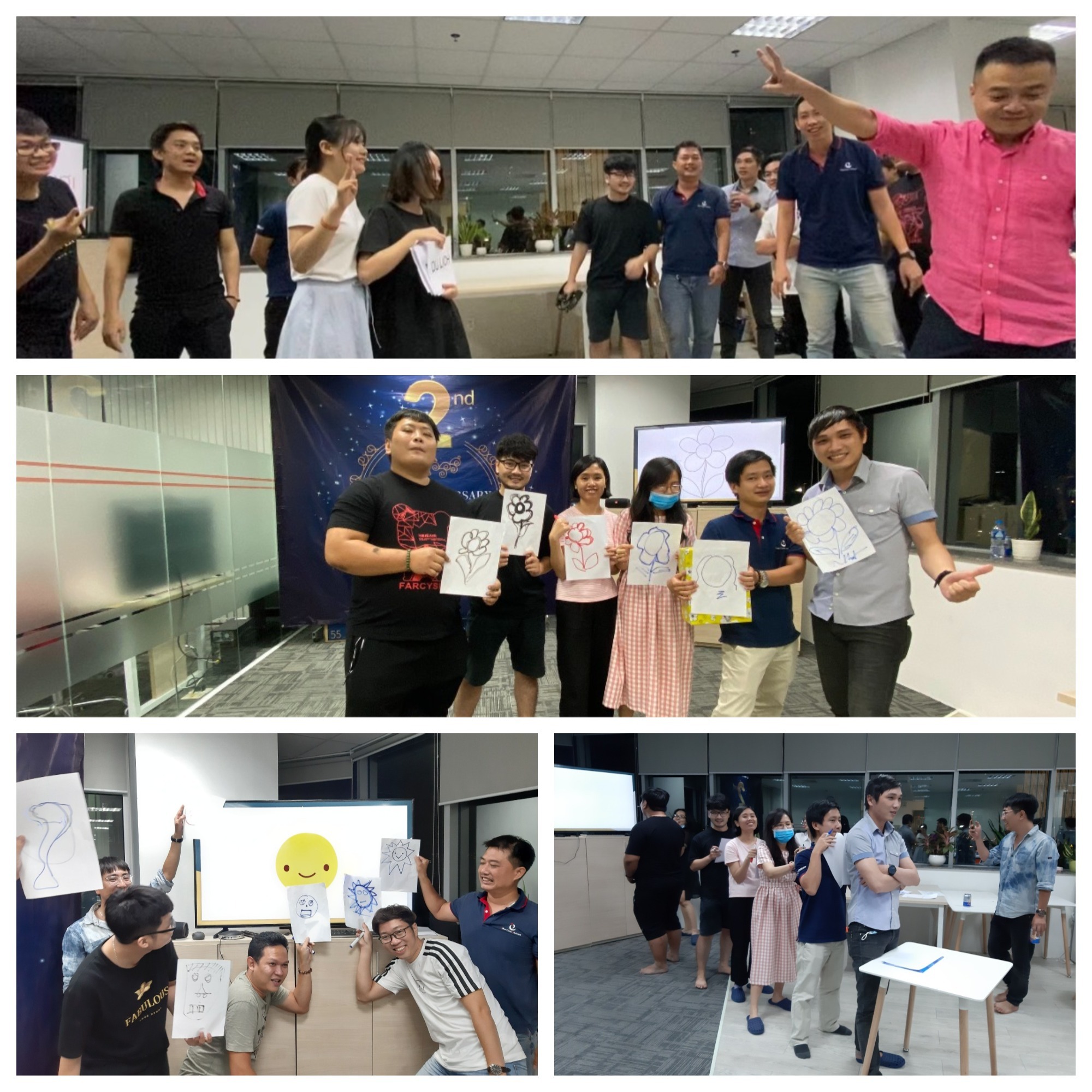 Để khuấy động thêm không khí, sau khi nhập tiệc, ban tổ chức đã bày ra một số trò chơi teambuilding nhỏ như vẽ hình trên lưng, đuổi hình bắt chữ. Những bức hình không giống gì với hình gốc được vẽ ra từ sự sao chép trên lưng của 5 đồng đội, những màn cười nghiêng ngả khi mô tả hình mà không được phát ra tiếng đã gắn kết thêm tinh thần đồng đội giữa 2 văn phòng. Cũng may là những chữ để đoán là những từ quen thuộc với các thành viên Rivercrane Việt Nam như “tôn trọng hòa khí”, “fix bug”, “tập thể dục”, “nghỉ hè”,… nên cũng không khó để đoán.