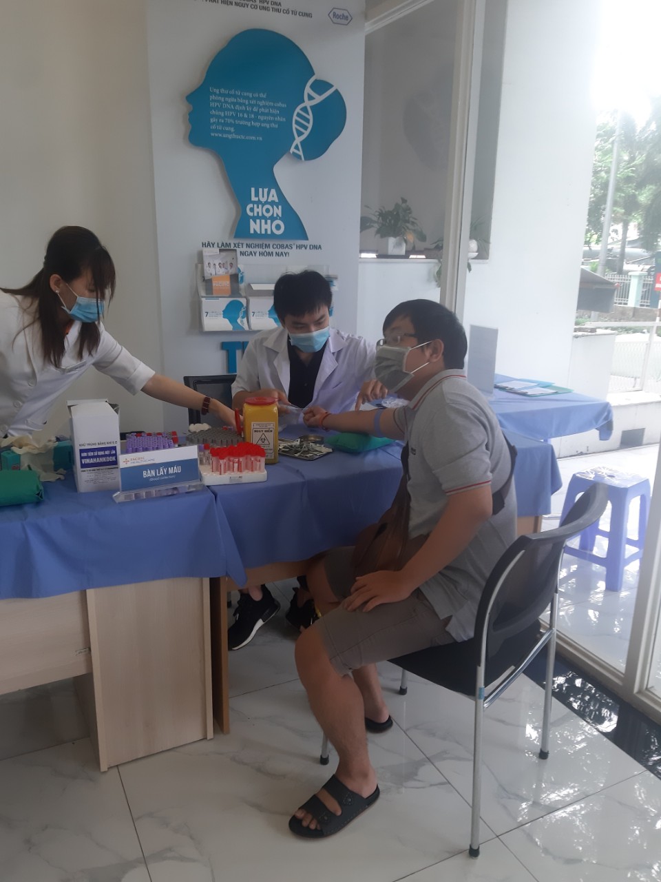Từ sáng sớm mọi người có mặt đầy đủ để làm thủ tục check-in. Để có thể phòng tránh và kiểm soát tối đa dịch bệnh covid-19, phòng khám đã bổ sung vào thủ tục check-in các bước như rửa tay sát khuẩn, kiểm tra thân nhiệt cũng như khai báo y tế trước khi bắt đầu thực hiện thăm khám.