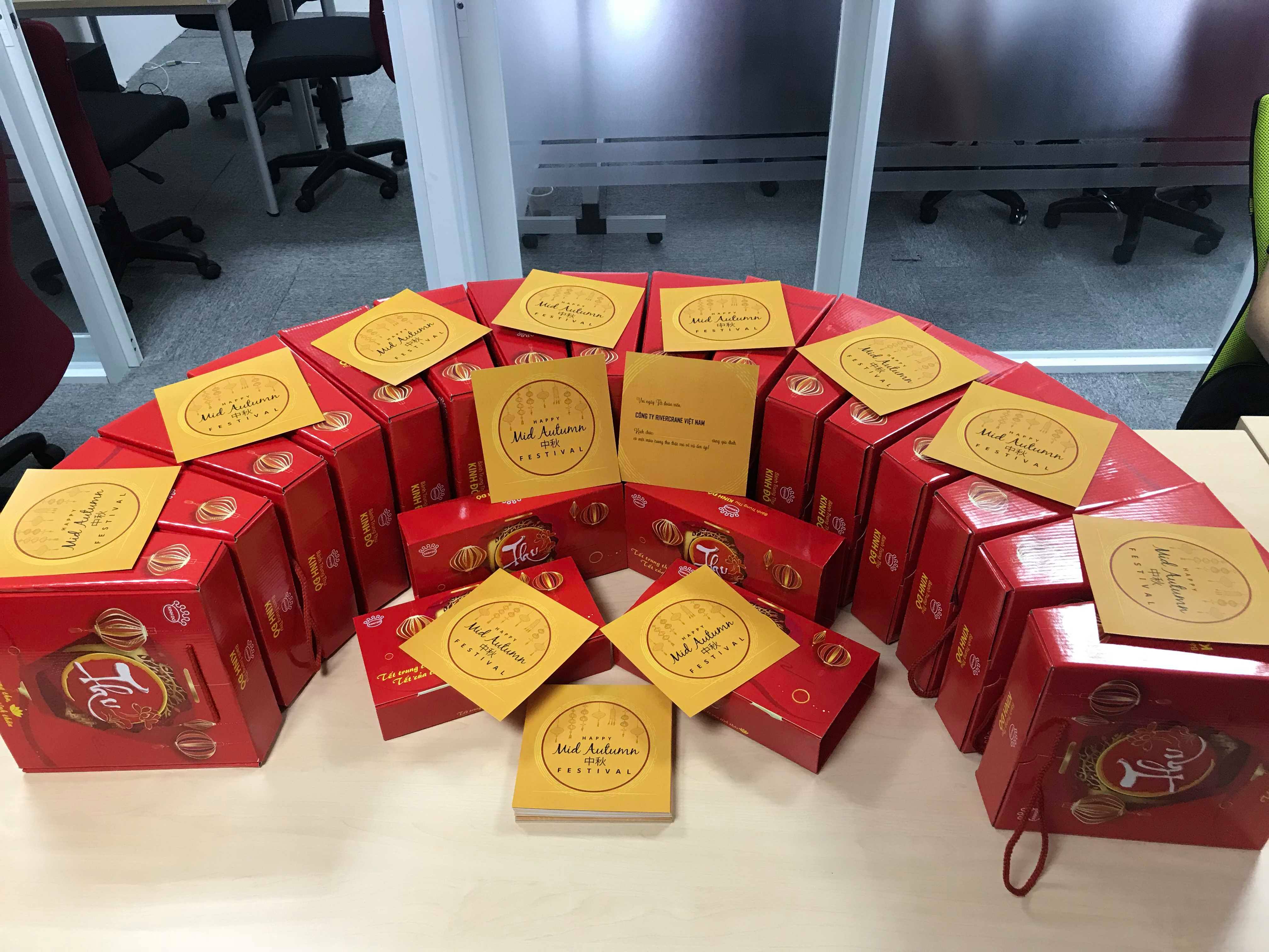 Bên cạnh gia đình nhỏ còn có gia đình lớn Rivercrane Việt Nam. Trung thu năm nay, công đoàn công ty đã gửi đến các công đoàn viên những hộp bánh trung thu xinh xắn, cùng với đó là những lời chúc ý nghĩa gửi đến các anh chị nhân viên, người thân và gia đình. Chúc mọi người và đại gia đình Rivercrane Việt Nam có một Tết Đoàn viên thật đầm ấm và vui vẻ. Ahihihihi.